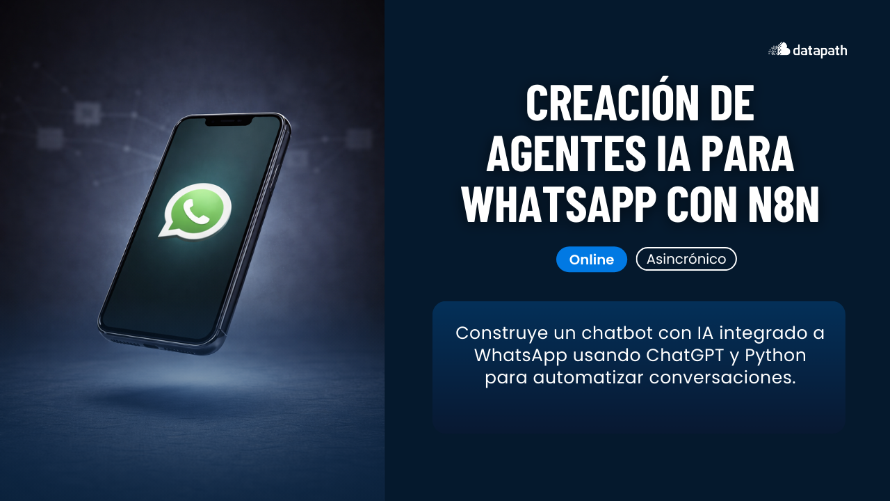 Agentes para WhatsApp con N8N es un curso práctico donde aprenderás a automatizar conversaciones, crear agentes para atención y prospección, integrar WhatsApp con otras apps y optimizar procesos de negocio usando flujos visuales.