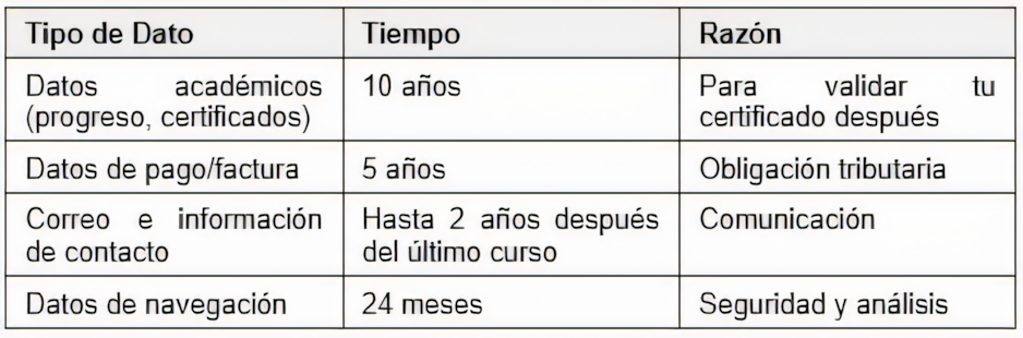 Después de este tiempo: Eliminamos tus datos de manera segura e irrecuperable.